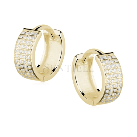 Srebrne kolczyki pr.925 kółka z czterema rzędami cyrkonii, pozłacane