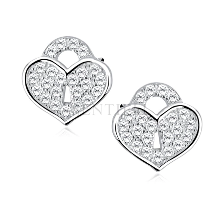 Srebrne kolczyki pr. 925 Cyrkonia microsetting serca-kłódki rodowane