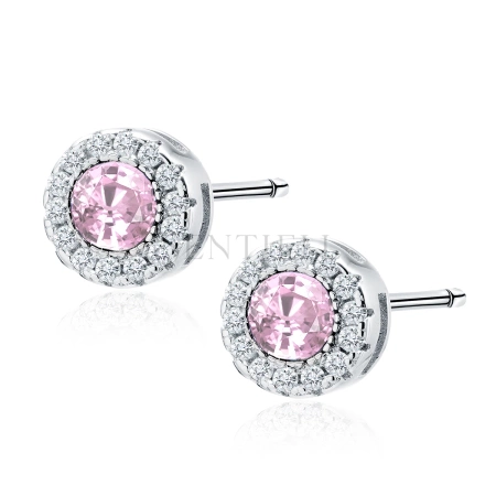 Srebrne pr.925 okrągłe kolczyki z jasnoróżową cyrkonią