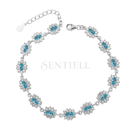 Srebrna modna bransoletka pr.925 Cyrkonia akwamarynowa - karmazycja