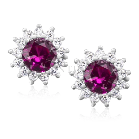 Srebrne kolczyki pr. 925 Cyrkonia rubinowa okrągła - karmazycja