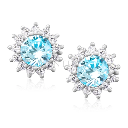 Srebrne kolczyki pr. 925 Cyrkonia akwamarynowa okrągła - karmazycja