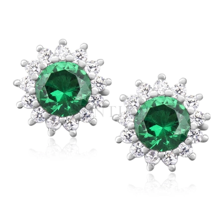 Srebrne kolczyki pr. 925 Cyrkonia szmaragdowa okrągła - karmazycja