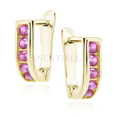 Srebrne kolczyki pr.925 złocone - różowa cyrkonia