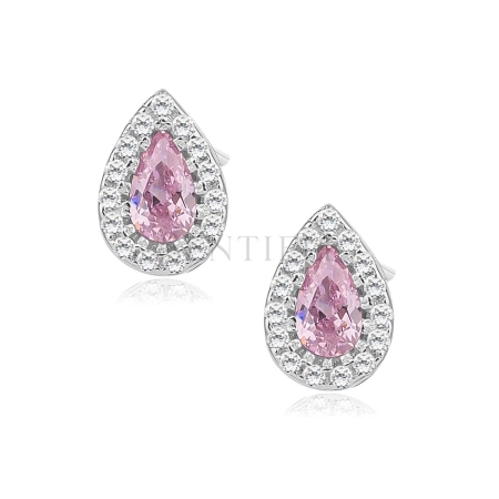 Srebrne kolczyki pr. 925 jasnoróżowe łezki z cyrkoniami