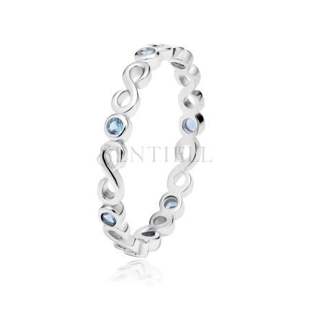 Srebrny delikatny pierścionek pr.925 cyrkonia akwamarynowa - Nieskończoność