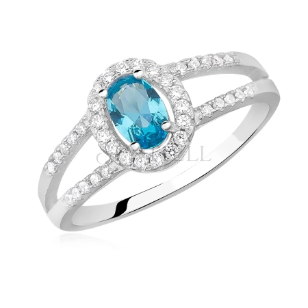 Srebrny pierścionek pr.925 z akwamarynową cyrkonią