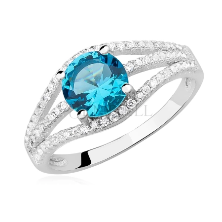 Srebrny pierścionek pr.925 z akwamarynową cyrkonią