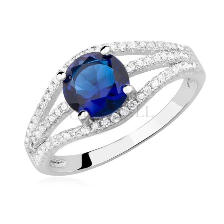 Srebrny pierścionek pr.925 z szafirową cyrkonią