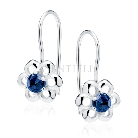 Srebrne kolczyki kwiatki pr 925 Cyrkonia szafirowa