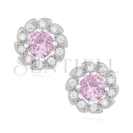 Srebrne kolczyki pr.925 z jasnoróżową cyrkonią