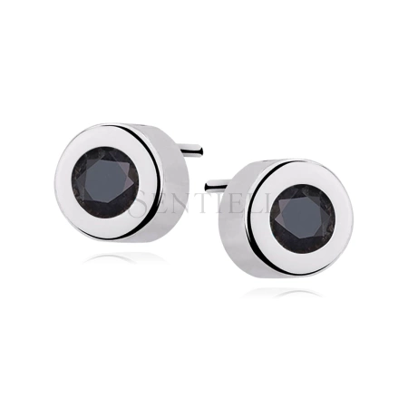 Srebrne okrągłe kolczyki pr.925 Cyrkonia czarna