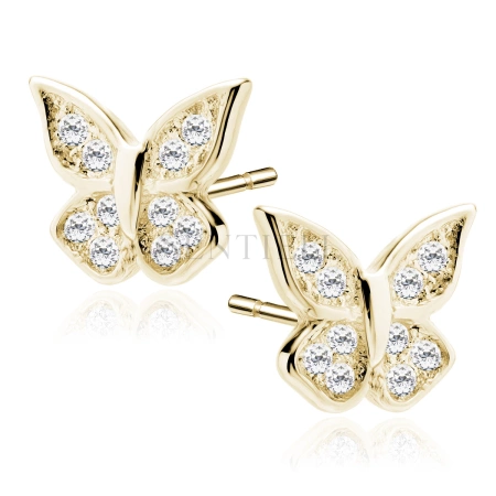 Srebrne kolczyki pr. 925 motylki z cyrkoniami pozłacane