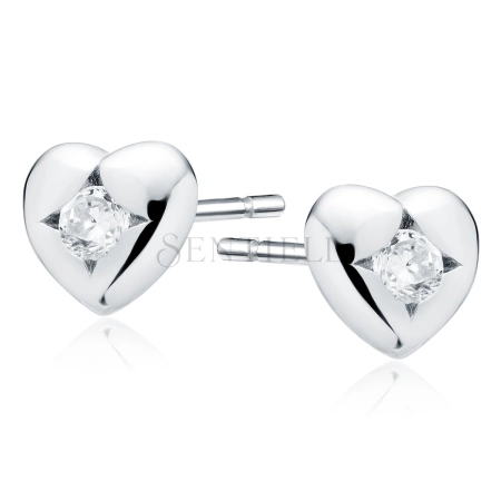 Srebrne pr.925 kolczyki serca z cyrkonią