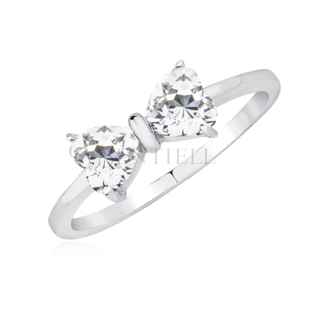 Srebrny pierścionek pr.925 kokardka z białą cyrkonią