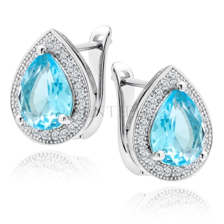 Srebrne pr.925 kolczyki cyrkonia akwamarynowa