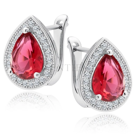 Srebrne pr.925 kolczyki cyrkonia rubinowa