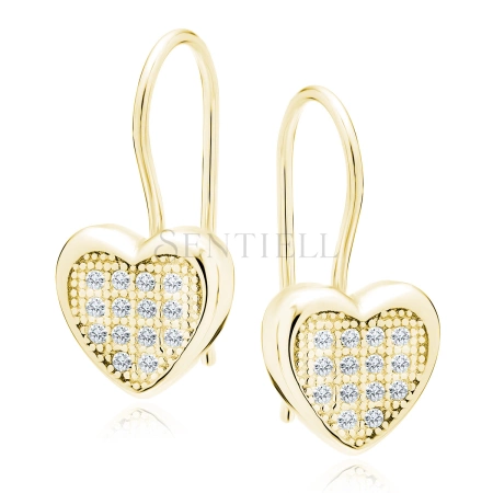 Srebrne kolczyki pr. 925 Cyrkonia microsetting serca pozłacane