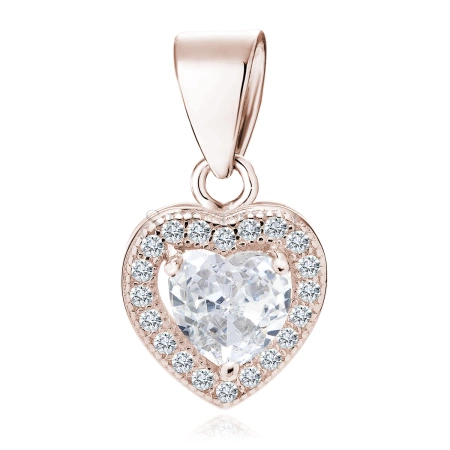 Srebrna zawieszka pr.925 serce z białą cyrkonią - różowe złoto