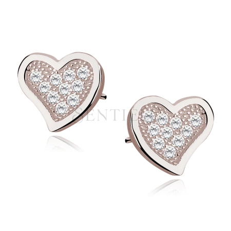 Srebrne kolczyki pr. 925 serduszka z cyrkoniami, różowe złoto