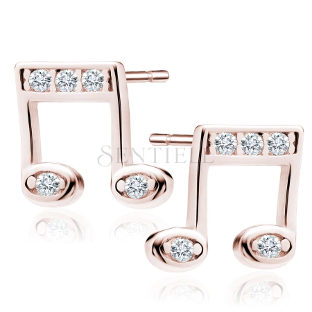 Srebrne kolczyki pr. 925 nuty z cyrkoniami, różowe złoto