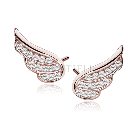 Srebrne kolczyki pr. 925 skrzydła z cyrkoniami, różowe złoto