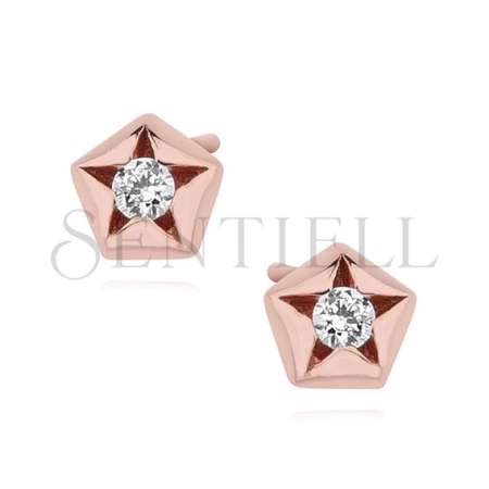 Srebrne pr.925 kolczyki gwiazdki z cyrkonią, różowe złoto