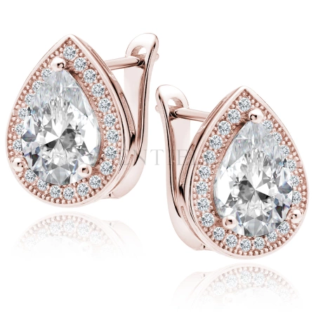 Srebrne pr.925 kolczyki cyrkonia biała, różowe złoto