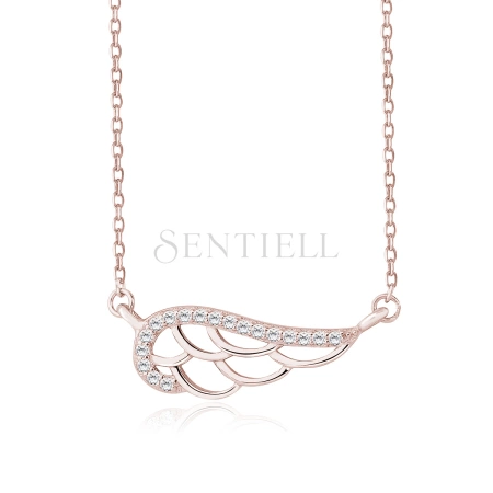 Srebrny naszyjnik pr.925 skrzydło z cyrkoniami, różowe złoto