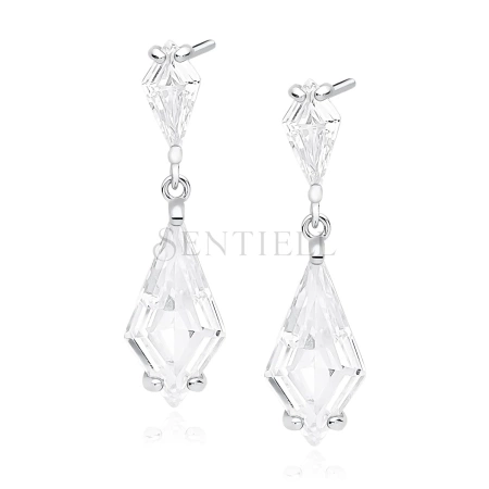 Srebrne pr.925 stylowe, ślubne kolczyki z cyrkonią