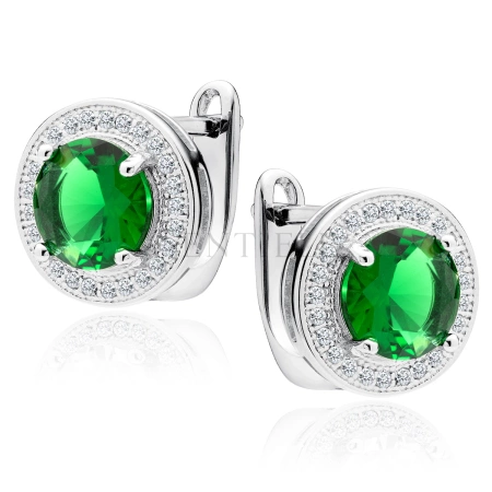 Srebrne pr.925 kolczyki okrągła szmaragdowa cyrkonia