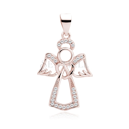 Srebrna zawieszka pr.925 anioł z cyrkoniami - różowe złoto