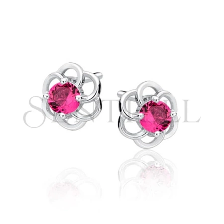 Srebrne kolczyki pr.925 kwiatki z rubinową cyrkonią