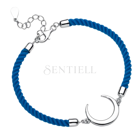 Srebrna pr.925 bransoletka z niebieskim sznurkiem - półksiężyc