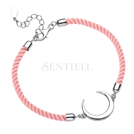 Srebrna pr.925 bransoletka z różowym sznurkiem - półksiężyc
