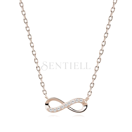 Srebrny naszyjnik pr.925 Nieskończoność z cyrkoniami różowe złoto