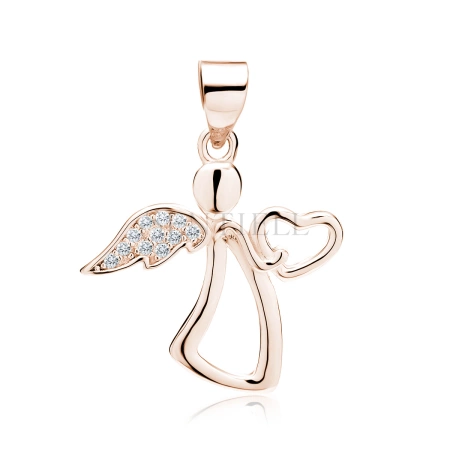 Srebrna zawieszka pr.925 anioł z cyrkoniami - różowe złoto