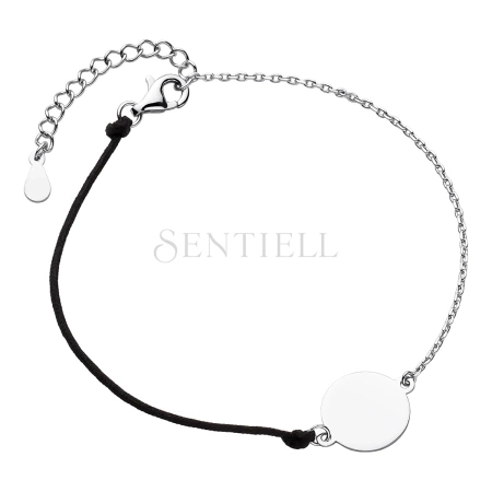 Srebrna pr.925 bransoletka z czarnym sznurkiem - kółko