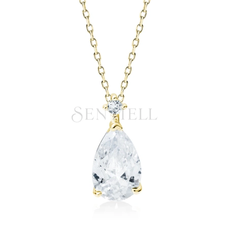 Srebrny pozłacany naszyjnik pr.925 z białą cyrkonią - łezka
