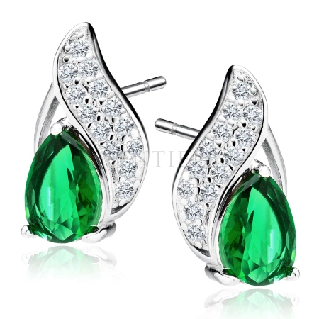 Srebrne pr.925 kolczyki cyrkonia szmaragdowa