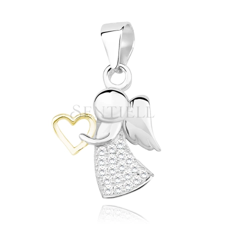 Srebrna zawieszka pr.925 anioł z cyrkoniami i pozłacanym sercem