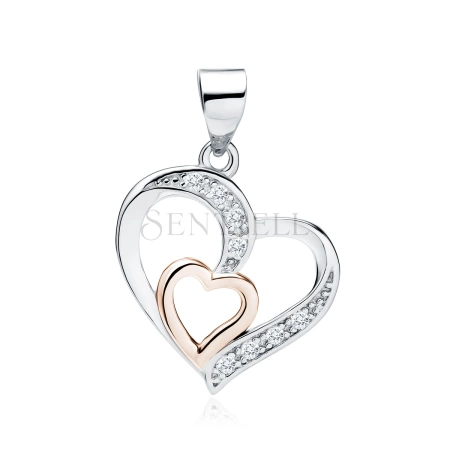 - Srebrna zawieszka pr. 925 serduszko w sercu z cyrkoniami - różowe złoto