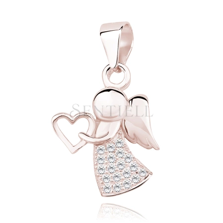 Srebrna pozłacana zawieszka pr.925 anioł z cyrkoniami - różowe złoto