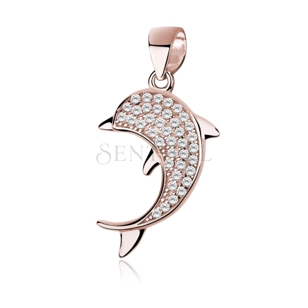 Srebrna zawieszka pr.925 pozłacany delfin z cyrkoniami - różowe złoto