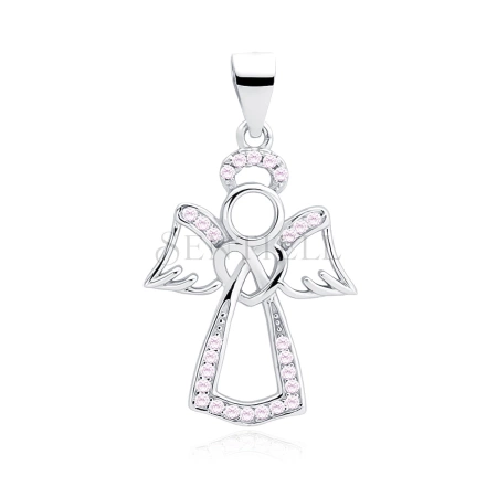 Srebrna zawieszka pr.925 anioł z jasnoróżowymi cyrkoniami