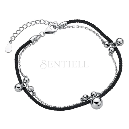 Srebrna pr.925 bransoletka z czarnym sznurkiem - kuleczki