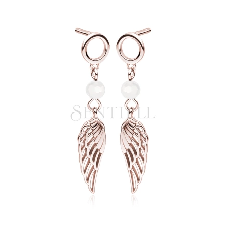 Srebrne pr.925 pozłacane różowym złotem kolczyki skrzydła z białą cyrkonią / spinelem