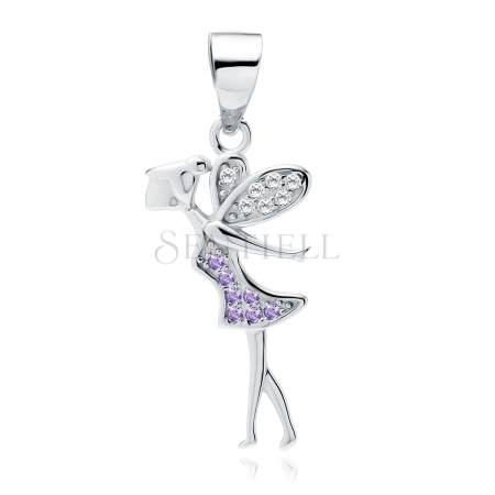 Srebrna zawieszka pr.925 wróżka z fioletowymi i białymi cyrkoniami
