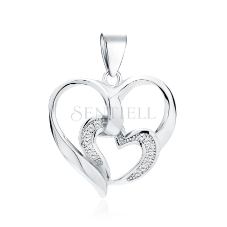 Srebrna zawieszka pr.925 serce z mniejszym sercem z cyrkoniami