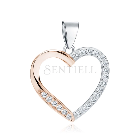 Srebrna pozłacana zawieszka pr.925 serce z cyrkoniami - różowe złoto